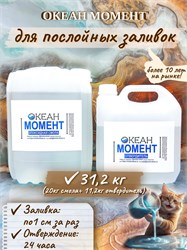 ОКЕАН МОМЕНТ (жидкая, прозрачная, время жизни 40 мин, толщина заливки при больших объемах до 1см (при заливках в мелких объемах толщина может быть больше), отверждение через 24ч. Отличный вариант для заливки трещин в дереве и бетоне, заливки в молды, быстрой послойной заливки эпоксидных столешниц, а также мелких объемных форм. Возможна заливка второго слоя на не до конца затвердевший первый слой через 12ч, за счет эффекта химической спайки итоговая толщина заливки может быть значительно больше.