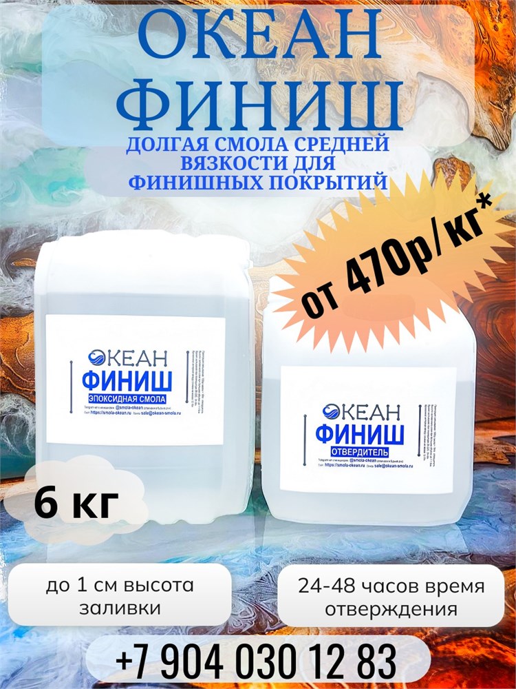 Океан "ФИНИШ" (смола + отвердитель) Фасовка 6кг - 535р/кг
